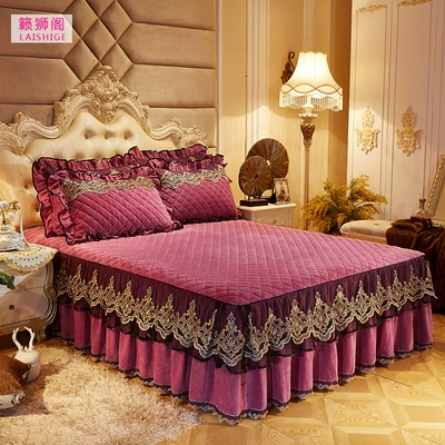 Đầm nhung pha lê châu Âu bọc giường đơn mảnh đặt chăn dày dày ấm ngắn giường sang trọng váy 1,8 / 2 mét giường - Váy Petti