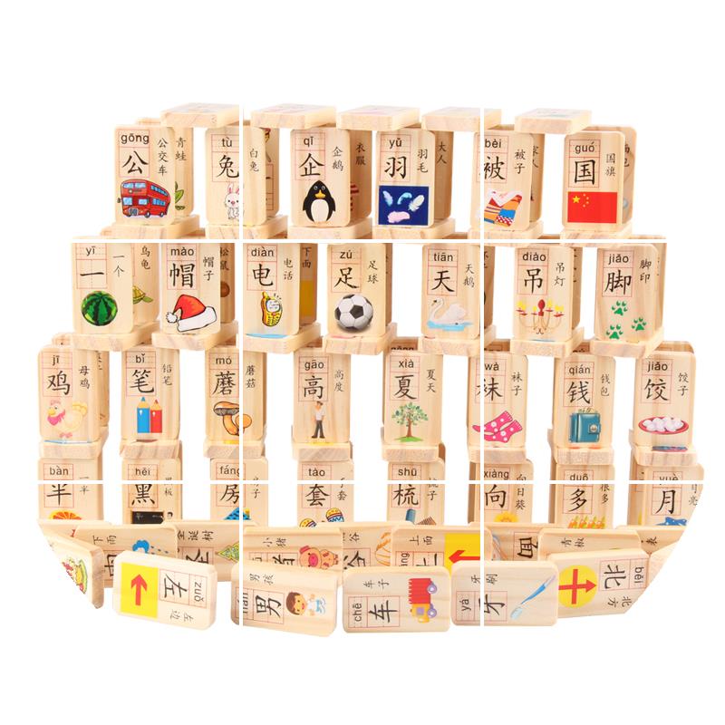 Đồ chơi bằng gỗ chiếm ưu thế kiến ​​thức của trẻ em Nhân vật Trung Quốc xây dựng khối thông minh 4-5-3-6 tuổi - Khối xây dựng