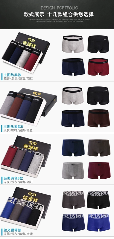 Đồ lót nam Hengyuanxiang nam cotton boxer thoáng khí kháng khuẩn mùa hè thanh niên quần vuông thoải mái và mềm mại - Eo cao