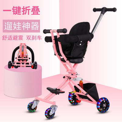 Đơn giản và nhẹ di động búp bê em bé tạo tác cho trẻ em năm bánh xe đẩy gấp ba bánh với ô phanh sau - Xe đẩy / Đi bộ