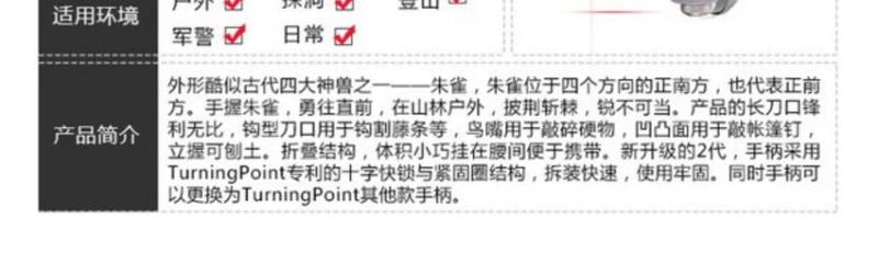 Đức Lưỡi dao quay Suzaku ngoài trời đa chức năng dao gấp công cụ tự vệ hatchet kỹ thuật xẻng - Công cụ Knift / công cụ đa mục đích