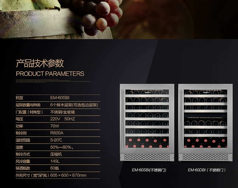 Eremite / Reclusive danh tiếng Máy làm lạnh rượu vang EM-60DBI Tủ rượu giữ nhiệt