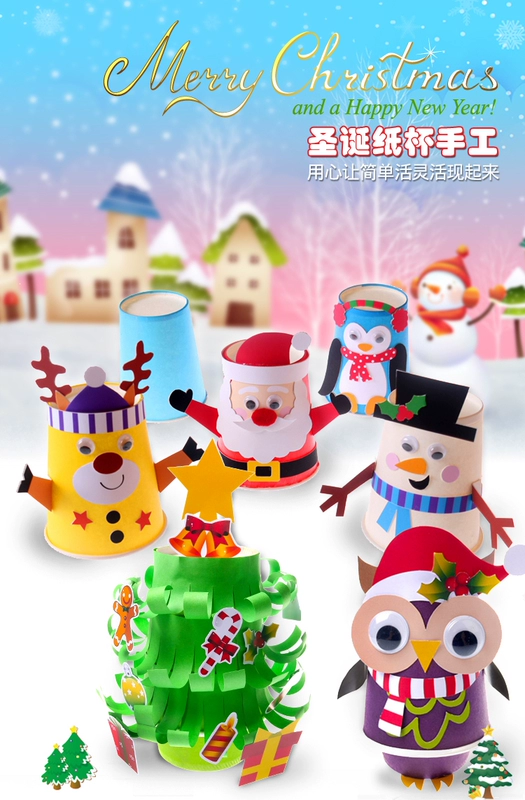 Giáng sinh handmade tự làm gói vật liệu Giáng sinh cốc giấy dán làm sáng tạo Santa snowman giấy cốc