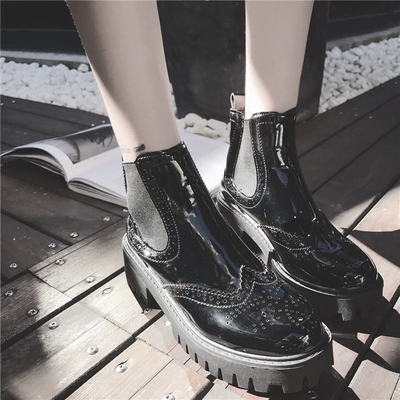 Giày bốt nữ Chelsea 2018 mùa thu và mùa đông đế xuồng đế dày dày với đôi bốt nữ Anh bốt ngắn đế xuồng châu Âu và bốt trần Martin của Hoa Kỳ