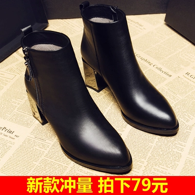 Giày cao gót nữ có đế dày, có đế nhọn Martin 2018 mùa thu đông mới cộng với đôi bốt ống ngắn bằng vải nhung của Anh