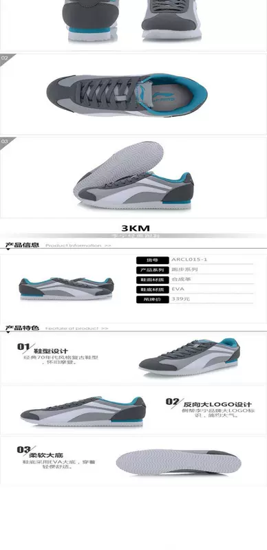 Giày chạy bộ cổ điển dành cho nam của Li Ning Mùa xuân và mùa thu 3KM Series Tương phản Retro Dòng chạy ARCL015