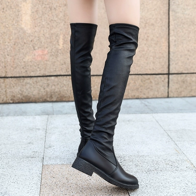Giày trẻ em 2019 hàng mới châu Âu thủy triều thu đông và mùa đông đen cộng với nhung qua đầu gối học sinh hoang dã là đôi giày ống dài thời trang mỏng - Giày ống