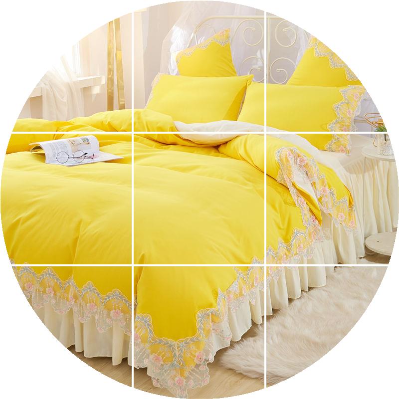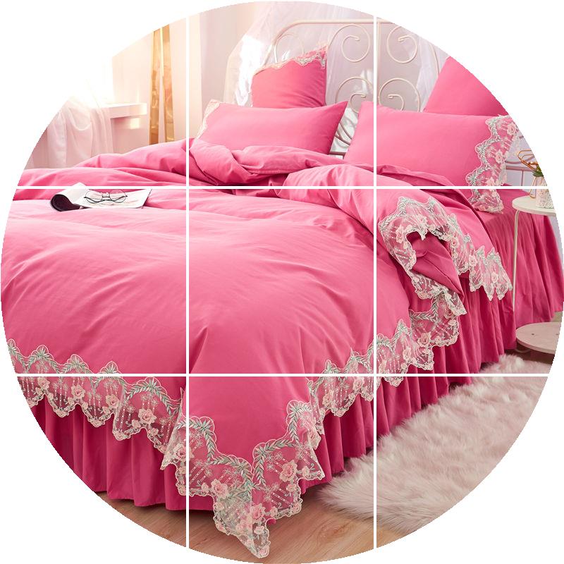 Giường lưới màu đỏ cotton bốn mảnh cotton công chúa gió ren màu rắn chăn mền phủ giường loại váy 1,5 / 1,8m - Váy Petti