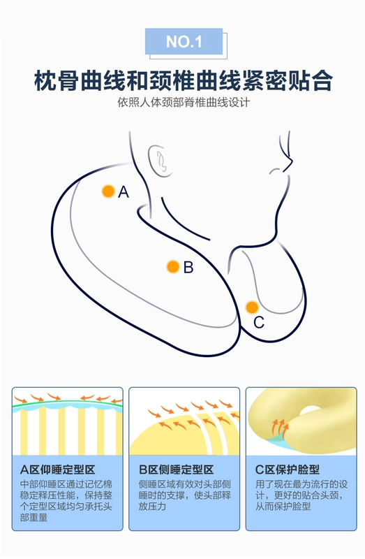 Gối hình chữ U Mousse Gối cổ NAP Gối đơn Cổ gối Gối cổ tử cung Bộ nhớ bọt Gối đôi - Gối