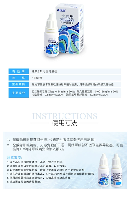 Haichang Water Feeling Eye Drops 15ml Kính cận thị vô hình Drops Eye bôi trơn Chất lỏng giữ ẩm - Kính đeo mắt kính