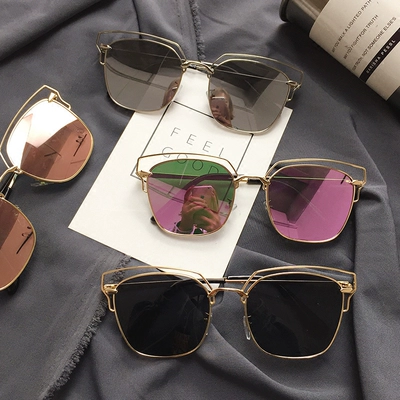 Hàn Quốc lưới đỏ với kính râm retro retro nữ kim loại khung tròn mặt biển bên kính hộp kính râm nam