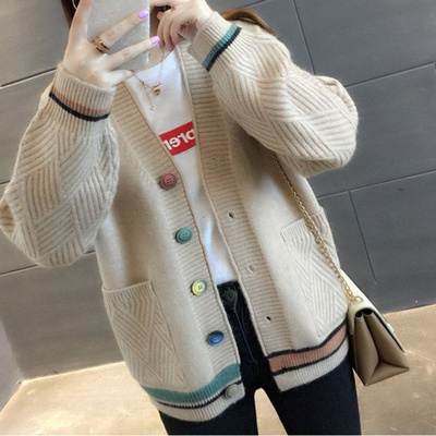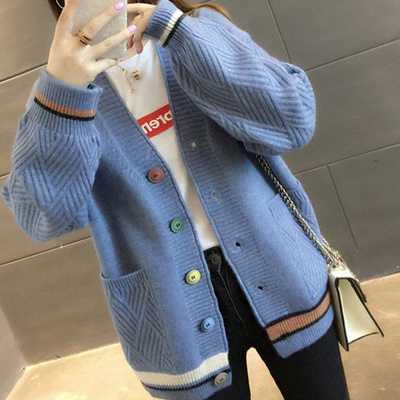 Học sinh mới 2019 Phiên bản Hàn Quốc của áo len bỏ túi nữ mùa thu nữ có cổ chữ V dài tay bên ngoài áo len dệt kim - Áo len cổ chữ V