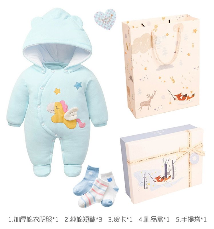 Hộp quà cho bé sơ sinh áo bông romper nam nữ quà tặng trăng tròn quà tặng trăm ngày lễ quà mùa thu và mùa đông
