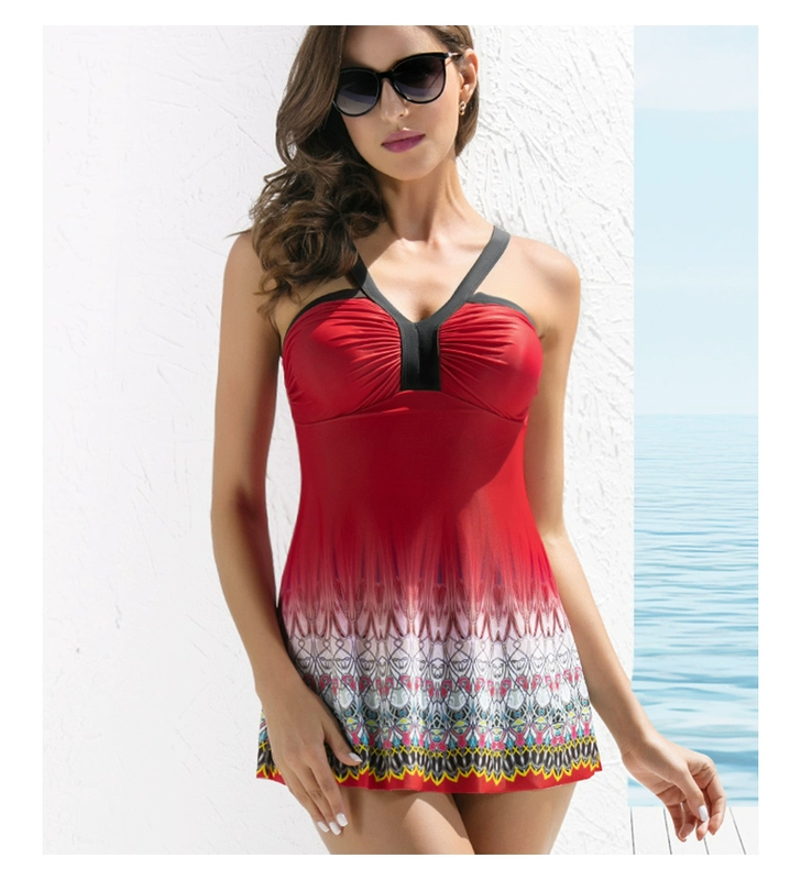 Hosa hosa váy liền thân ngực nhỏ thép tấm tập hợp áo tắm phụ nữ kích thước lớn bảo thủ giảm béo bụng áo tắm - Bộ đồ bơi One Piece