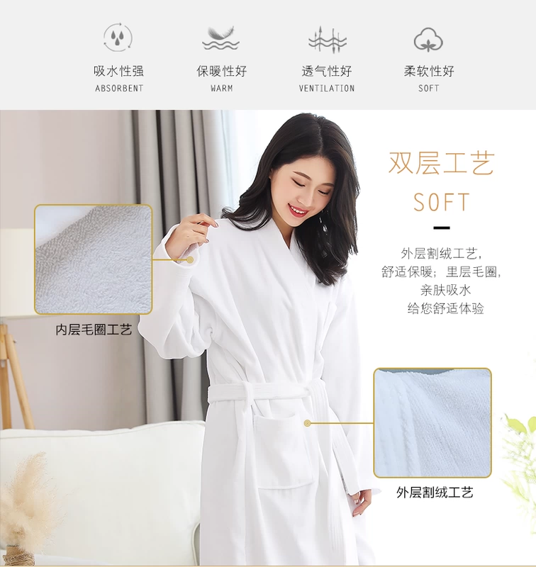Khách sạn áo choàng tắm người đàn ông áo choàng tắm và phụ nữ bông khăn tắm vài chiếc áo choàng mùa thu và phần dài mùa đông thấm dày - Khăn tắm / áo choàng tắm