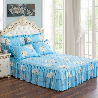 Khăn trải giường bằng vải cotton Bắc Âu Váy đơn mảnh cộng với khăn trải giường bằng vải bông đỏ chống trượt ba mảnh váy bốn mảnh