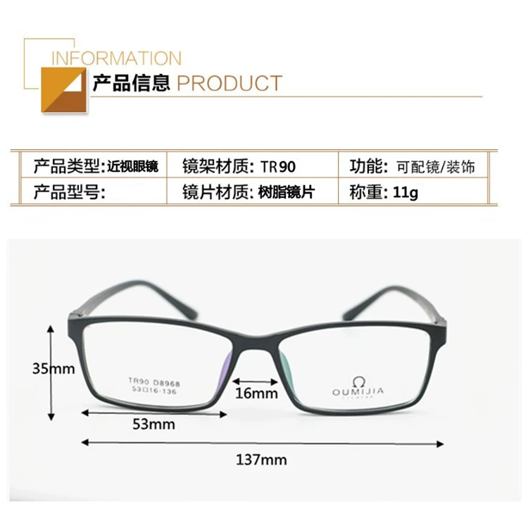 Khung kính Tr90 cho nam và nữ siêu nhẹ với kính cận thị có độ sáng chống xanh hoàn thành với tròng kính 50-1000 độ