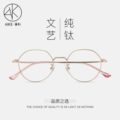 Kính chống bức xạ màu xanh kính gọng tròn gọng kính gọng kính phẳng nữ cận thị kính nam thuần titan khung kính - Kính khung
