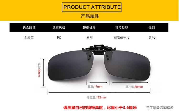 Kính râm kẹp phân cực, kính vuông, ống kính mực đặc biệt, kẹp vít, kính lái xe tiện lợi, kem chống nắng