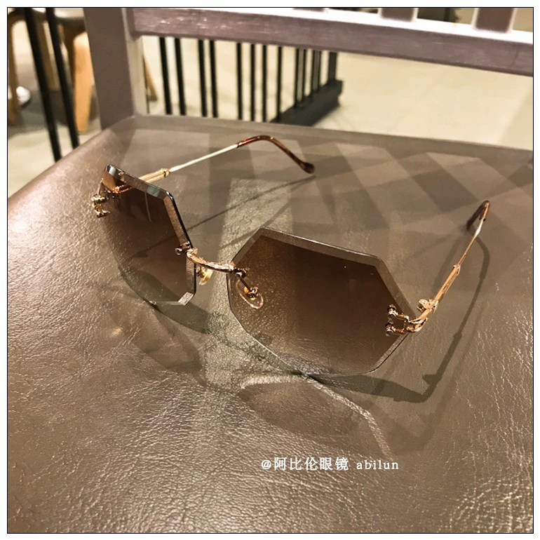 Kính râm ngũ giác mới 2018 không viền dày phim kính râm màu hồng kính thủy tinh cô gái thủy triều