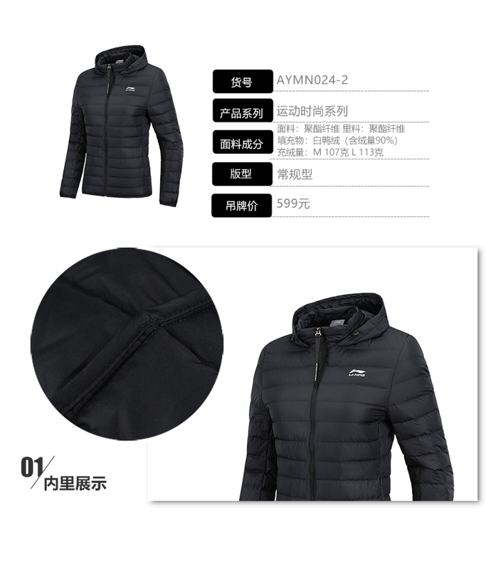 Li Ning ngắn xuống áo khoác nữ thể thao loạt thời trang áo khoác ấm áp trùm đầu mùa đông vịt trắng xuống đồ thể thao - Thể thao xuống áo khoác