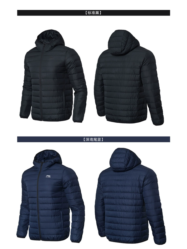 Li Ning xuống áo khoác nam mùa thu đích thực áo khoác trùm đầu màu trắng vịt xuống nhẹ áo ấm mùa đông đồ thể thao nam - Thể thao xuống áo khoác