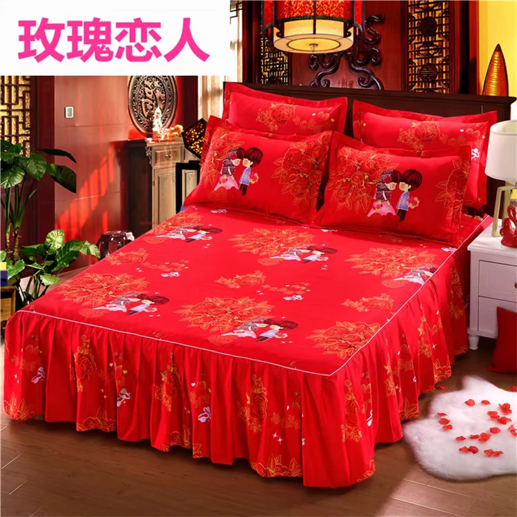 Lớn màu đỏ bông đơn giường váy cưới ba mảnh ren giường 1.8 / 2.0 giường bông bụi