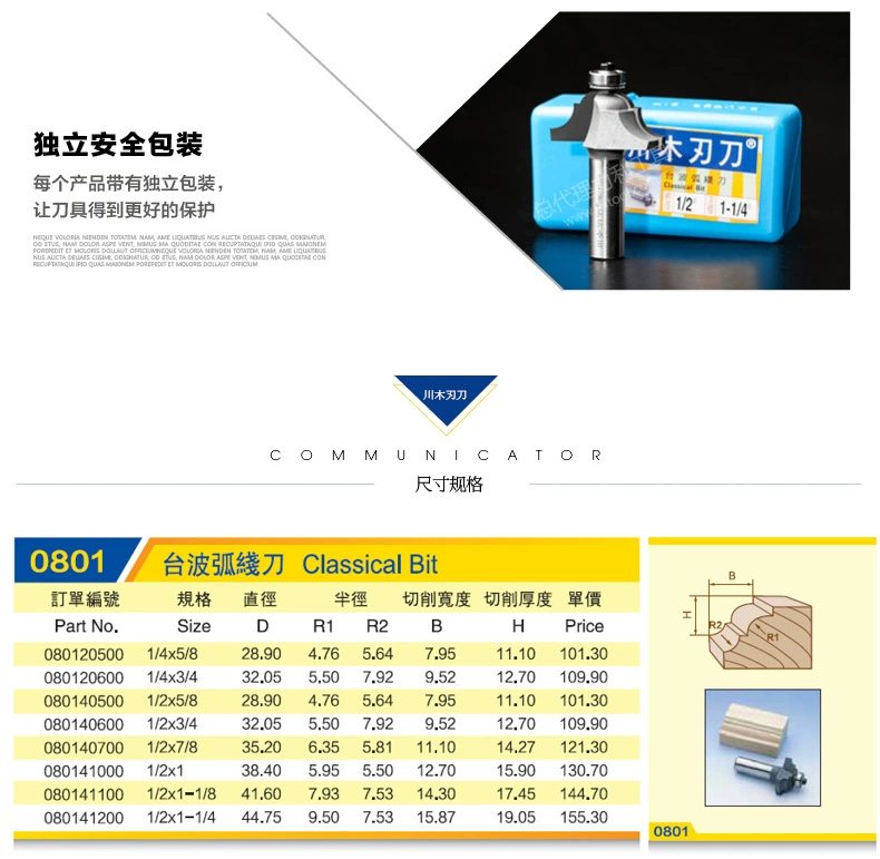 Lưỡi dao trang trí dao Đài Loan sóng hồ quang dao gỗ chế biến dao cắt chuyên nghiệp dao phay 0801 cổ điển