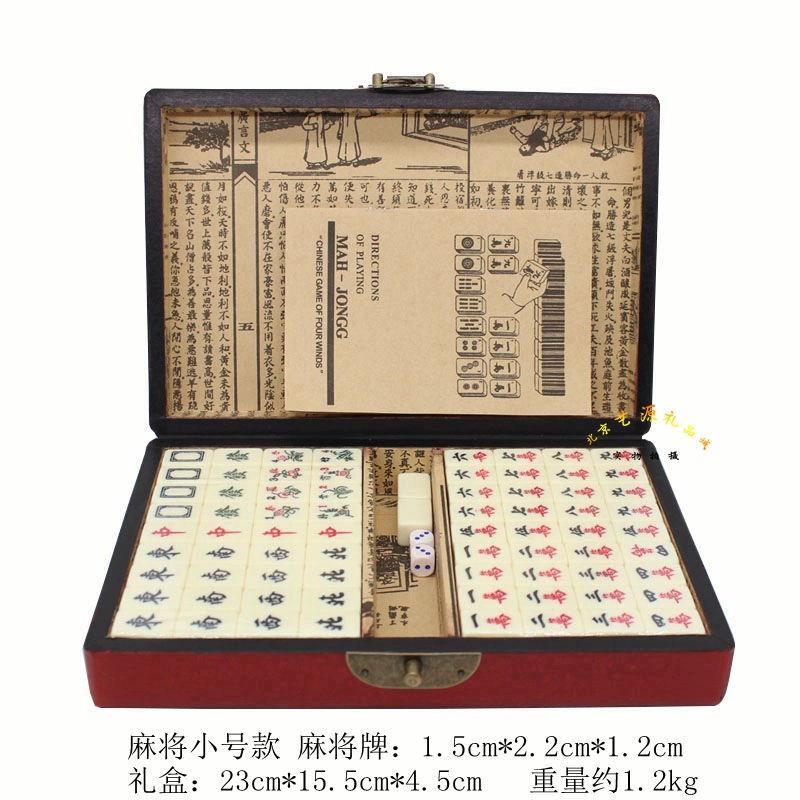 Mạt chược cổ hộp mạt chược du lịch ký túc xá du lịch tiếng Anh mạt chược với hộp da cổ Fu Lu Shou cho người nước ngoài