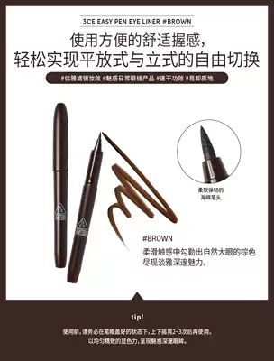 Màu chính hãng 3CE mới của Hàn Quốc kết xuất màu đầu lâu không nở hoa kẻ mắt không thấm nước bên mới - Bút kẻ mắt