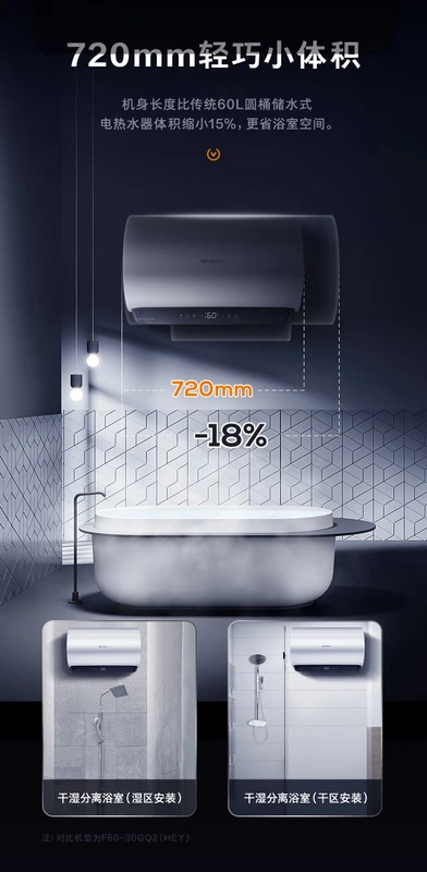 Máy nước nóng điện Beverly F6030-LS5 (HEY) Hộ gia đình 60 lít Tiết kiệm nhiệt nhanh Điều khiển từ xa nhỏ - Máy đun nước