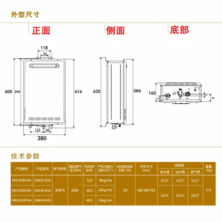 Máy nước nóng Kanch / Kangquan KRF-R16VCA chất chống đông ngoài trời khí đốt tự nhiên nhiệt độ ổn định nước nóng chống khô - Máy đun nước