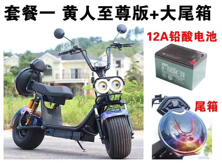 Mới Harley màu vàng pin xe Harley dành cho người lớn xe tay ga dành cho người lớn Puharei xe điện trước và sau phanh đĩa 60V - Xe đạp điện