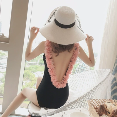 Mới mùa xuân nóng hè đen thời trang áo tắm ren backless nữ che bụng nhỏ nước hoa gió áo tắm một mảnh - Bộ đồ bơi One Piece