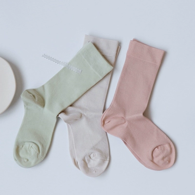 Morandi màu dài vớ nữ màu rắn mùa thu và mùa đông Vớ Hàn Quốc ống cotton cao giúp trắng đen Nhật Bản - Vớ sợi tre