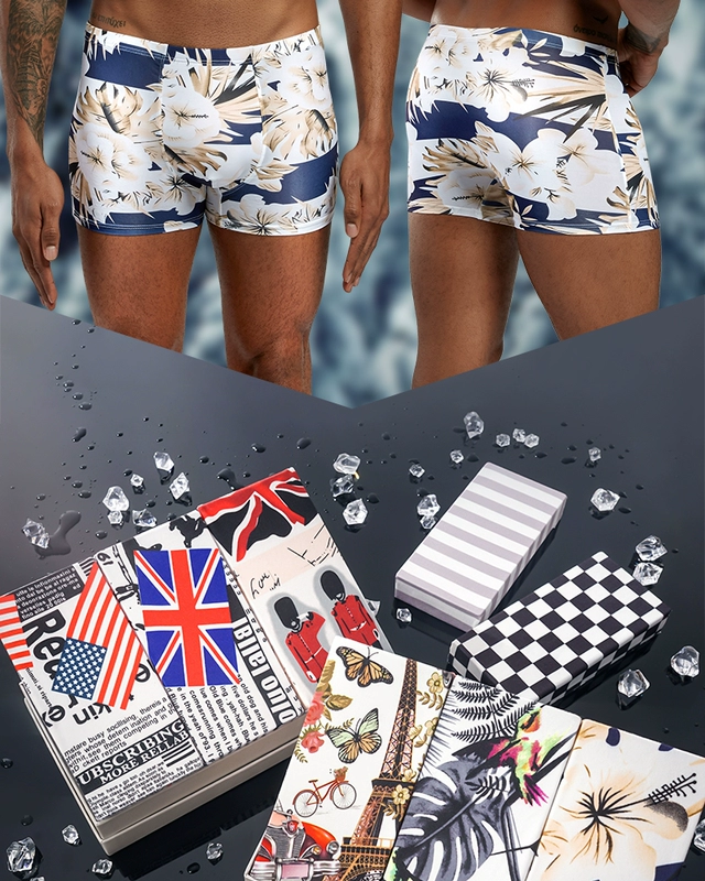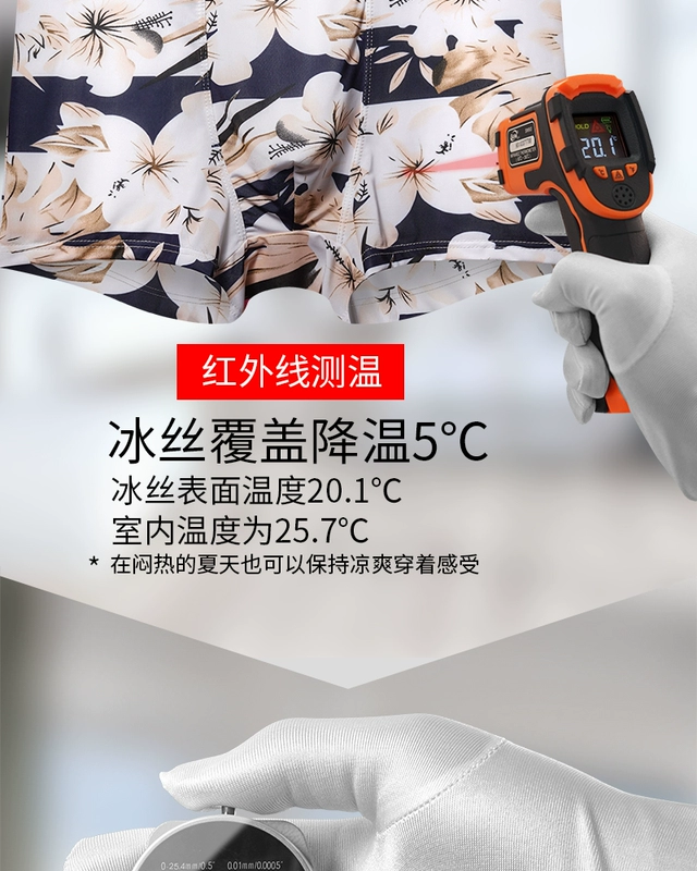Mùa hè mới băng lụa đồ lót nam thanh niên thoải mái thoáng khí kích thước lớn boyshort trai cotton eo bốn góc quần - Eo cao