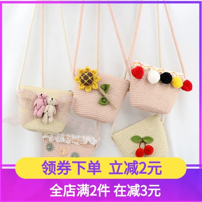 Mùa hè mới trẻ em làm bằng tay túi rơm Công chúa Messenger túi dễ thương bé gái phụ kiện ví mini xu - Túi bé / Ba lô / Hành lý
