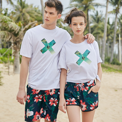 Mùa hè quần rộng bãi biển nam kích thước lớn kỳ nghỉ bên bờ biển những người yêu thích mùa xuân nóng tắm phù hợp với quần short phụ nữ năm điểm - Quần bãi biển