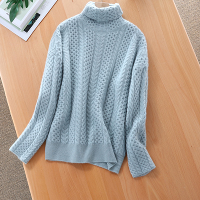 Mùa thu và mùa đông áo len cashmere mới của phụ nữ cao cổ áo len dày áo thun rộng kích thước lớn xoắn đan đáy áo - Áo / áo thun