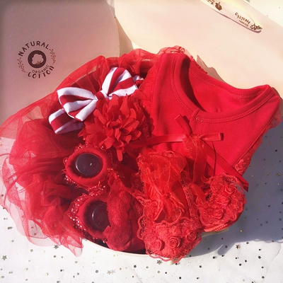 Mùa xuân và mùa hè Mùa hè Hộp quà cho bé Sơ sinh Quần áo dài tay Trăng tròn Trăm ngày Bộ màu đỏ Nữ bé Công chúa Váy