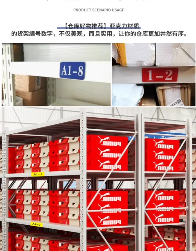 Nhà kho nhà máy số kệ ký hiệu kỹ thuật số ghi nhãn tài liệu vị trí lưu trữ nhãn hiệu phân vùng tiếng Anh tùy chỉnh acrylic