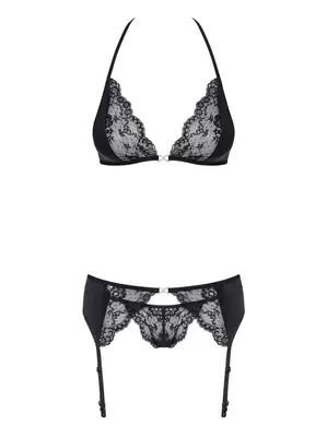 Nhập khẩu châu Âu Ám ảnh đen satin khâu mềm mại cảm thấy áo ba lỗ garter bra T quần - Nịt Tất