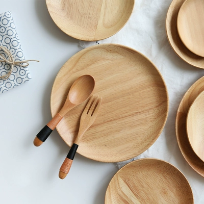 Nhật Bản phong cách đĩa gỗ đĩa gỗ rắn khay gỗ tròn cao su tấm gỗ món tráng miệng đĩa gỗ tấm trái cây bộ đồ ăn