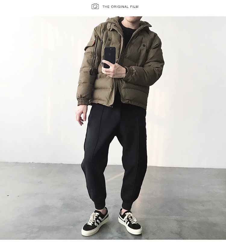 Nhật Bản retro mùa đông rắn màu dày áo ấm nam dụng cụ áo khoác cotton