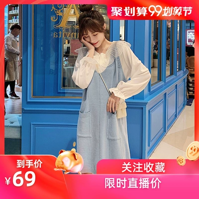 Phụ nữ mang thai 2019 mùa thu Hàn Quốc của áo len hai dây ngọt ngào và đáng yêu + áo sơ mi ren đáy ren phụ nữ mang bầu phù hợp với váy nữ - Áo thai sản