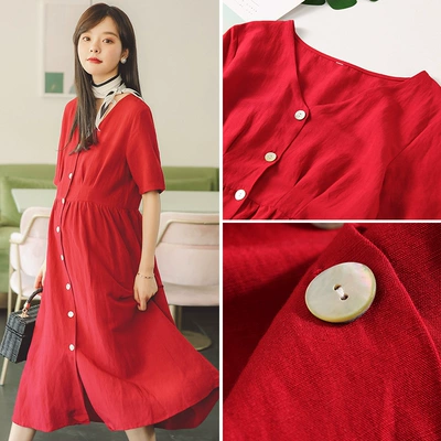 Phụ nữ mang thai mùa hè Phụ nữ mang thai Phụ nữ mang thai Váy hè hè buông lơi dài qua đầu gối cho con bú Váy dài thủy triều mẹ - Áo thai sản