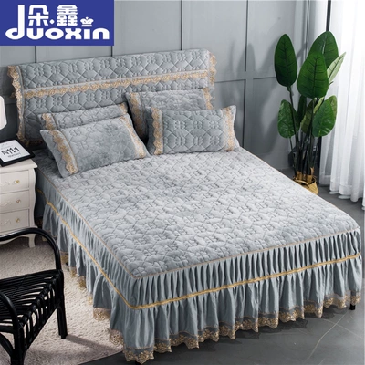 Phương pháp Levin cashmere dày bông giường váy mùa đông rắn một mảnh không trượt tấm set bông giường và bìa bông ren - Váy Petti