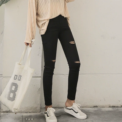 Quần bà bầu mùa hè quần jeans ống mỏng mặc chín điểm quần legging đen size lớn 2019 mới - Phụ nữ mang thai quần / quần bụng