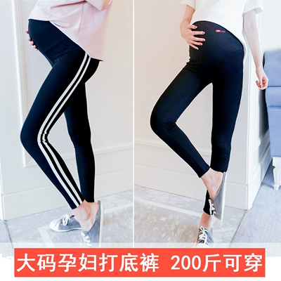 Quần legging bà bầu có kích thước lớn 200 kg cộng với phân bón mặc mùa thu mới cotton thả lỏng nâng bụng cộng với nhung dày chín điểm - Phụ nữ mang thai quần / quần bụng