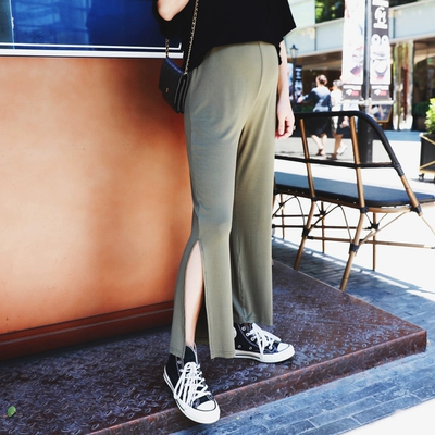 Quần lửng, quần bà bầu, cotton mềm mại, quần ống rộng, yếm, váy bà bầu, xuân hè - Phụ nữ mang thai quần / quần bụng